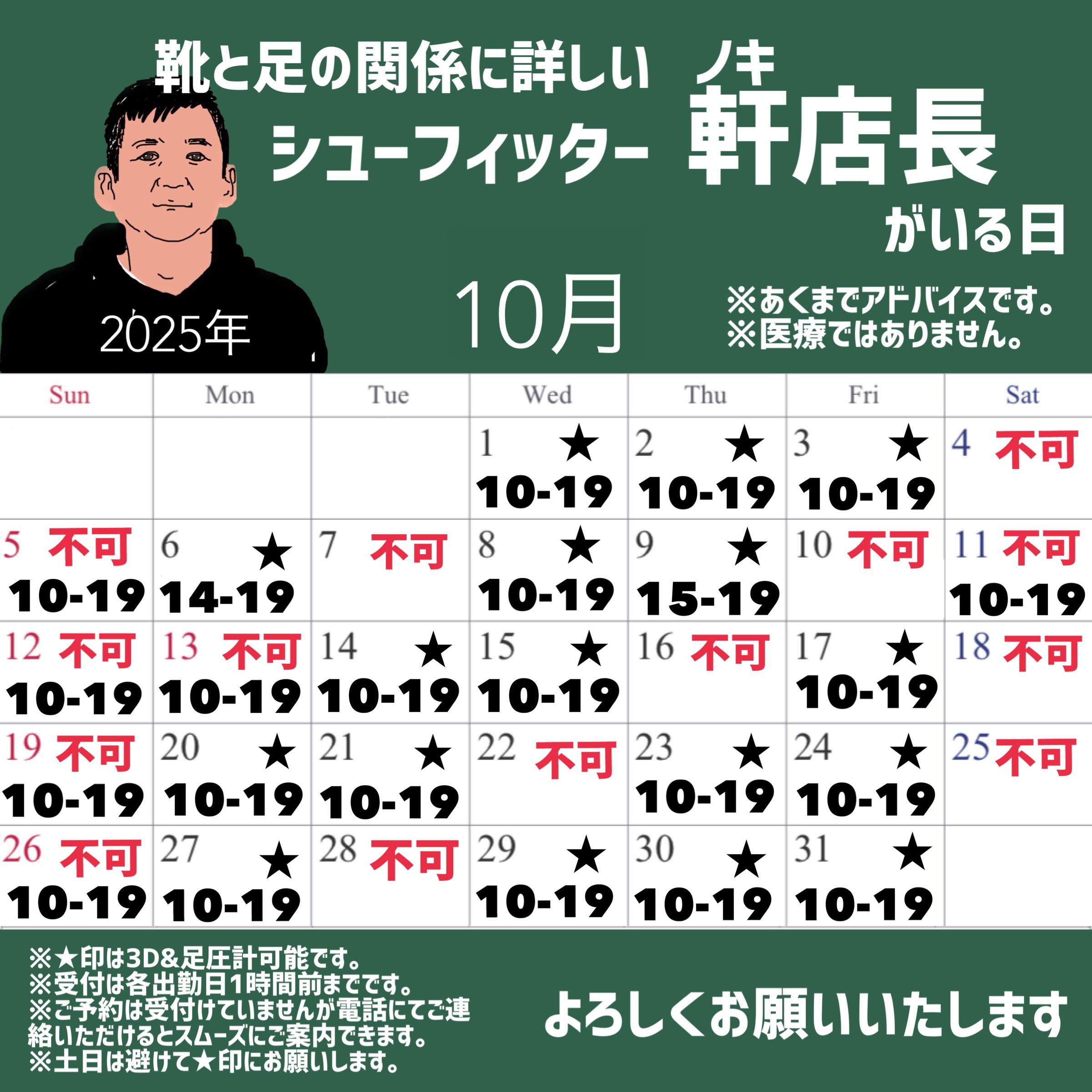 なるべく不可記載以外にご来店お願いいたします。