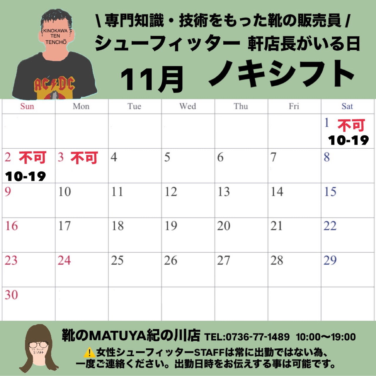 ※担当STAFF不在の場合は再度受付ご来店していただく事となりますので、申し訳ございませんが予めご連絡下さい。