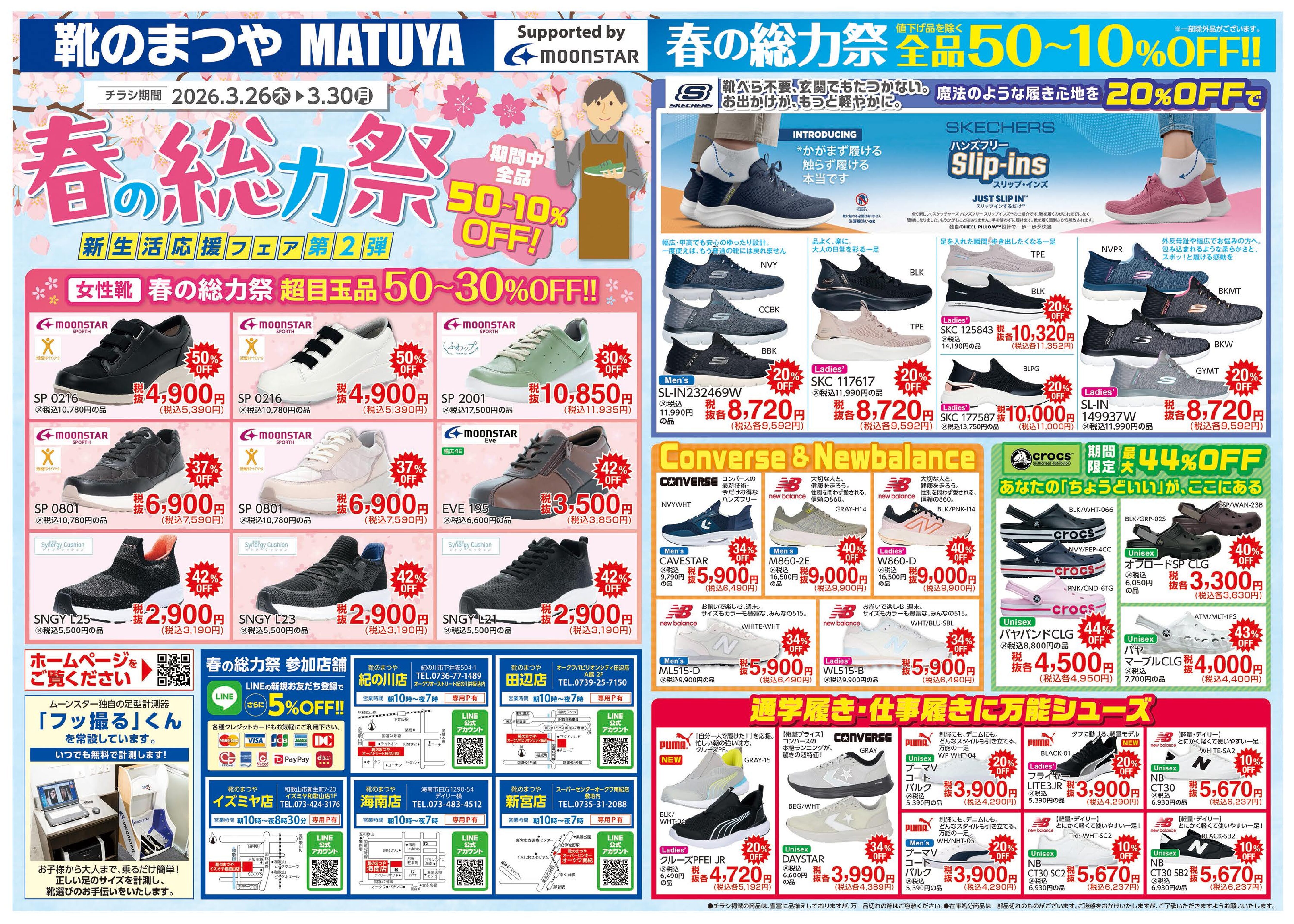 春の総力祭 第2弾 2026.03.23 春の総力祭 第2弾 春の総力祭 第2弾です。 入園、入学需要 春のお出かけ、旅行に足に良い、履きやすい靴を揃えてお待ちしています! チラシの詳細はこちらから。 春の総力祭!